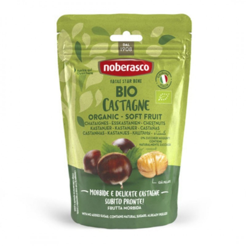Castañas peladas y blandas. Producidas según el proceso tradicional, lento y estricto, que conserva la textura natural. La castaña es un alimento nutritivo, sabroso, completo y equilibrado. Un refrigerio inusual que sorprende por su sabor. Fuente de potasio y magnesio. El potasio contribuye a la función de los músculos; el magnesio contribuye a la reducción de la fatiga y el cansancio.