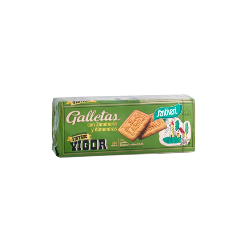 Galletas elaboradas con harina de trigo y contienen zanahoria y almendra, ingredientes de gran interés nutricional que permiten obtener una galletas muy nutritivas.