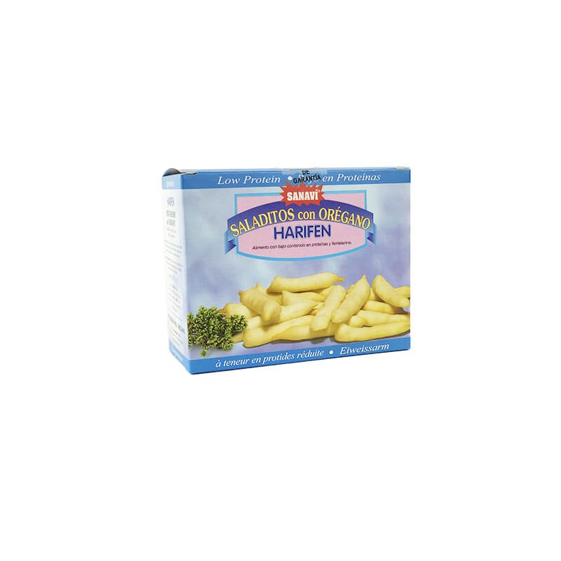 Deliciosos snacks salados bajos en proteínas y fenilalanina, elaborados con orégano, ideales para acompañar cualquier salsa.