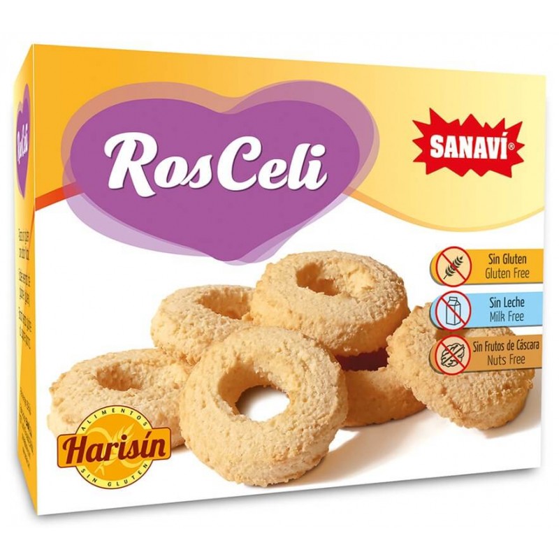 Los ROSCELI HARISIN son unos deliciosos roscos sin gluten, de delicado sabor a nata, ideales para acompañar desayunos y meriendas. Aportan a su dieta un producto lleno de sabor y nutrientes para su correcta nutrición. Apto para celíacos.