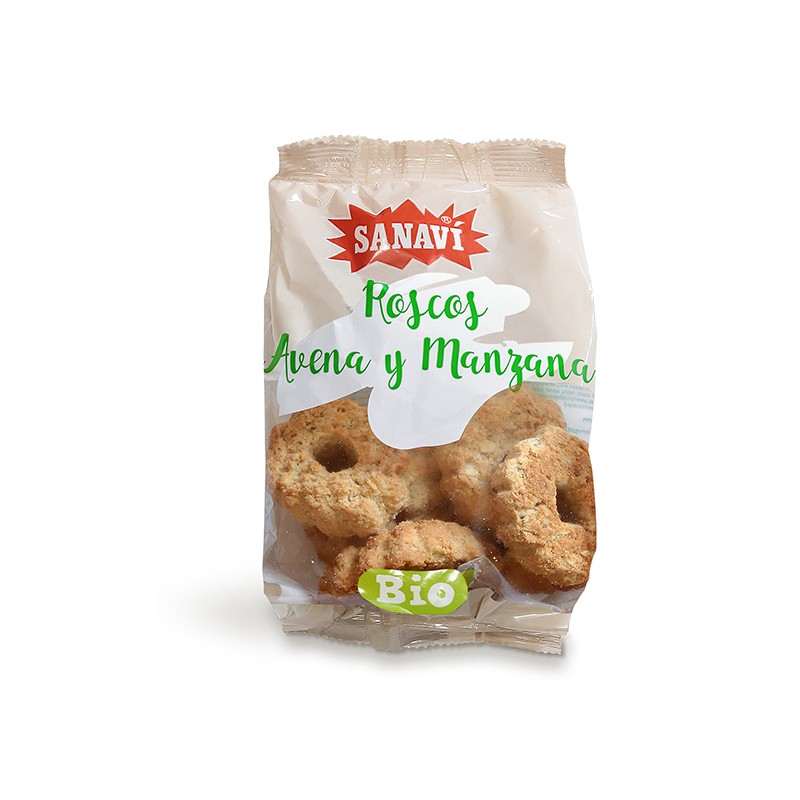 Roscos de avena con el delicioso toque de la manzana. Elaborados con ingredientes ecológicos y aptos para veganos.