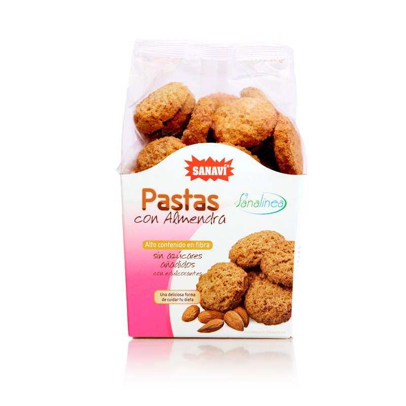 Las PASTAS INTEGRALES CON ALMENDRAS Sin Azúcares Añadidos SANALINEA son unas galletas elaboradas con materias primas que ayudan a mantener una dieta equilibrada. Aportan a nuestra dieta una fuente de magnesio y de fibra.