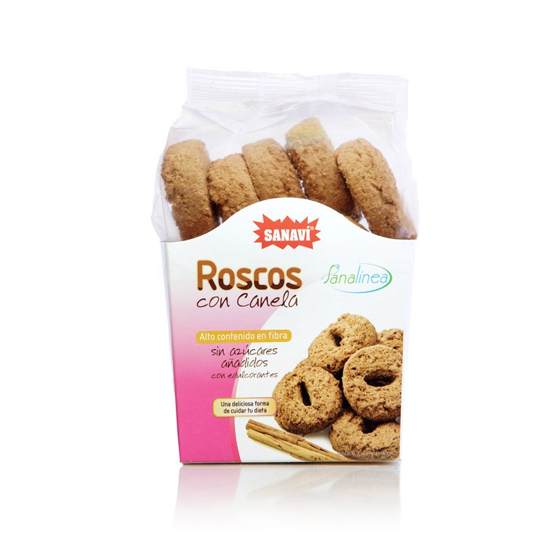 Los ROSCOS DE CANELA Sin Azúcares Añadidos SANALINEA son unos productos elaborados según una receta artesanal y con ingredientes que aportan a la dieta una gran proporción de fibra alimentaria.