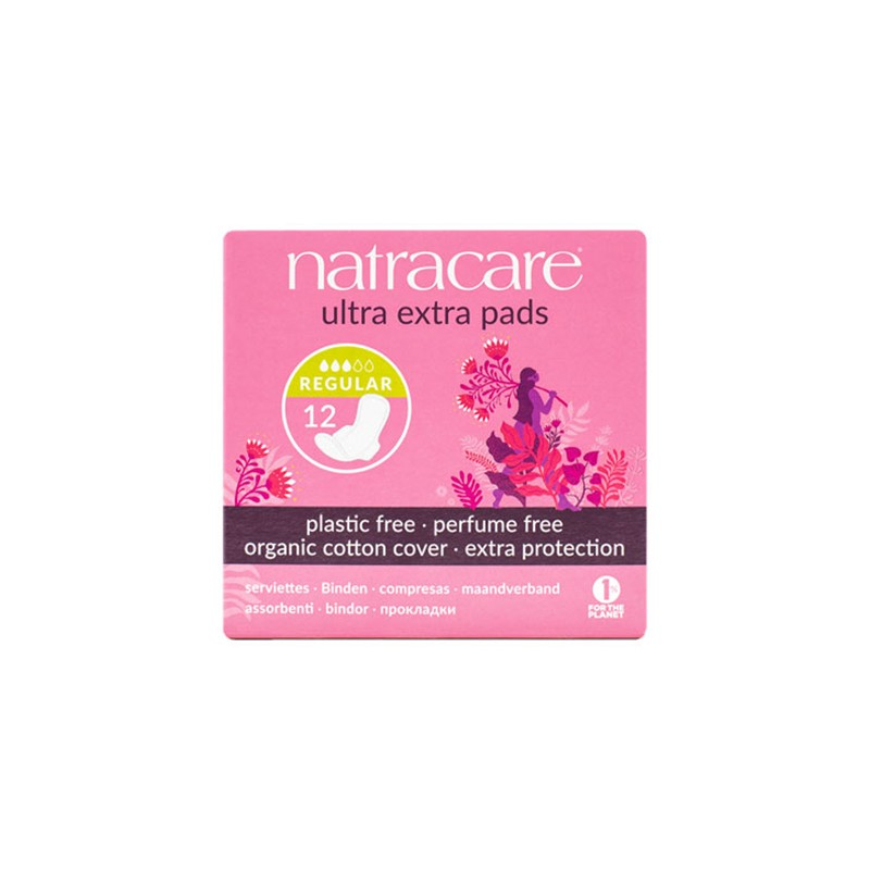 Compresas sanitarias naturales y absorbentes con una capa acolchada adicional y con alas. Para menstruación de flujo medio o menos abundante.
