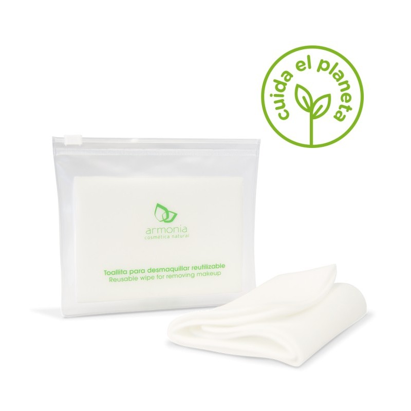 Pensada para retirar productos limpiadores y mascarillas faciales.Solución ecológica y reutilizable de Armonía Cosmética Natural, para retirar de manera eficaz los productos desmaquillantes de la rutina de limpieza facial y eliminar los restos de maquillaje de rostro, cuello y ojos. Sustituye a los dicos desmaquillantes desechables.