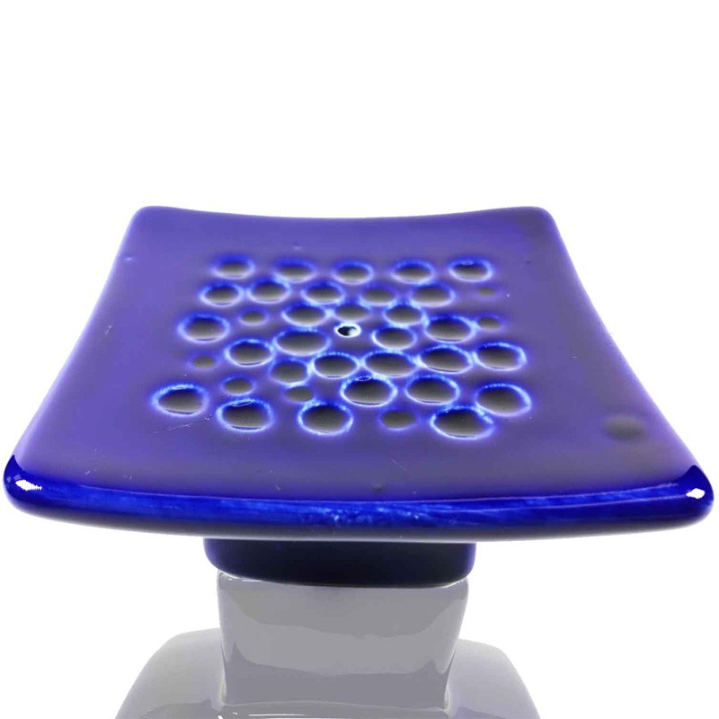 Incensario de cerámica de color azul, con una estructura Cuadrada, diseñado para quemar incienso en grano, sticks y conos.
