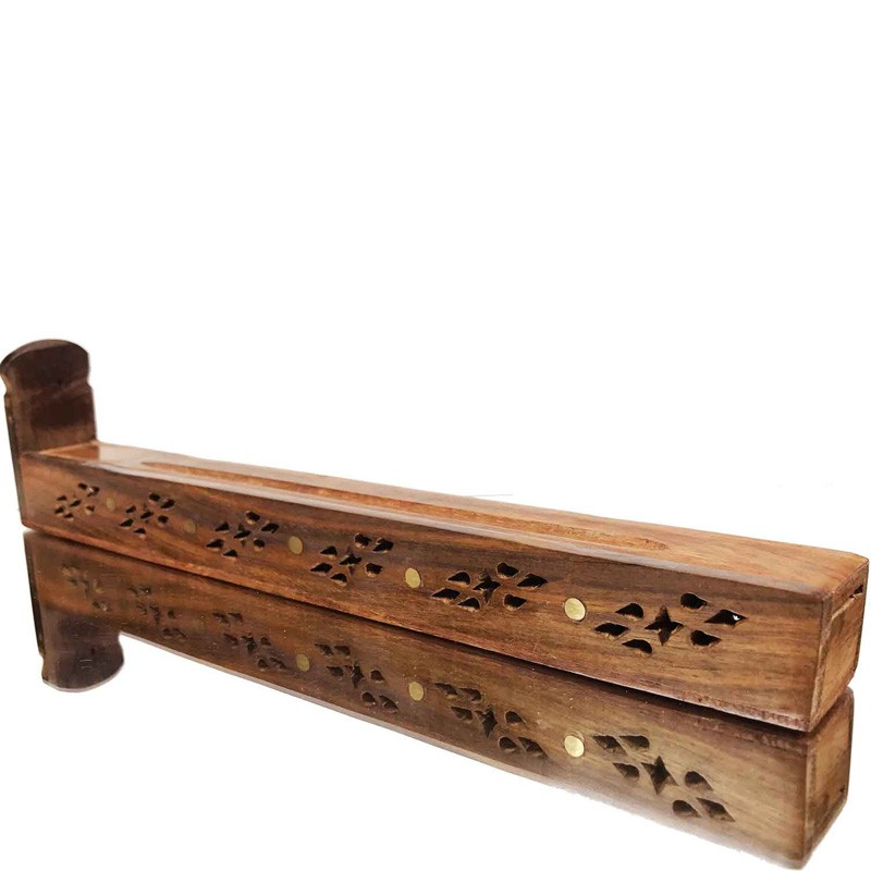 Incensario Caja de madera, con una decoración grabada en los laterales. Se puede almacenar el incienso en el interior. Diseñado para incienso en sticks.