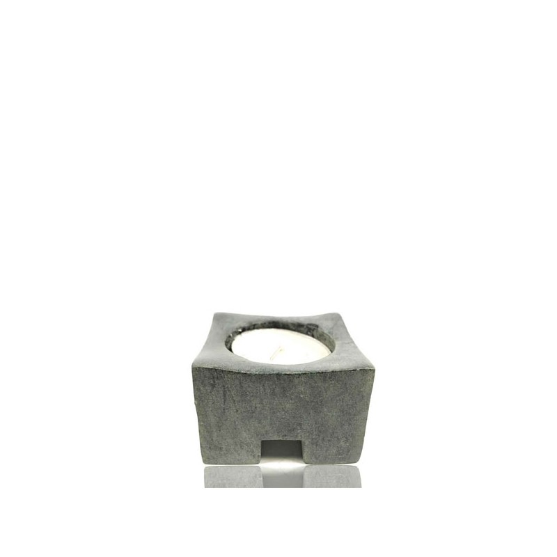 Portavela de piedra jaspe de color verde tallado a mano, con una estructura cuadrada, y capacidad para una vela.