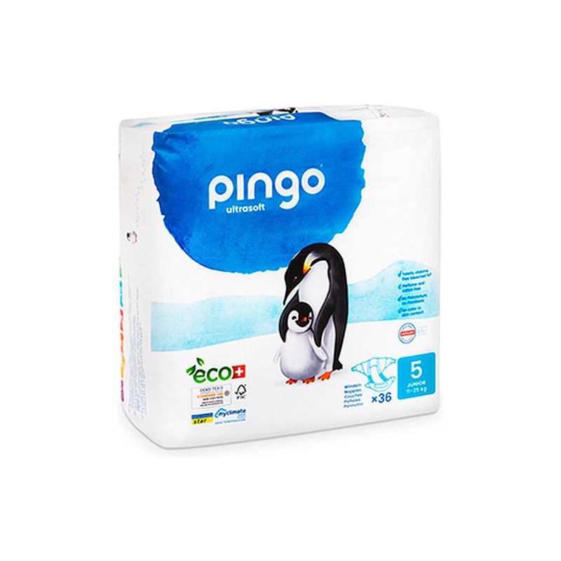 Pañales Bio T5 (12-25 kg) de Pingo son unos pañales absorbentes que mantienen la piel seca de día y noche.