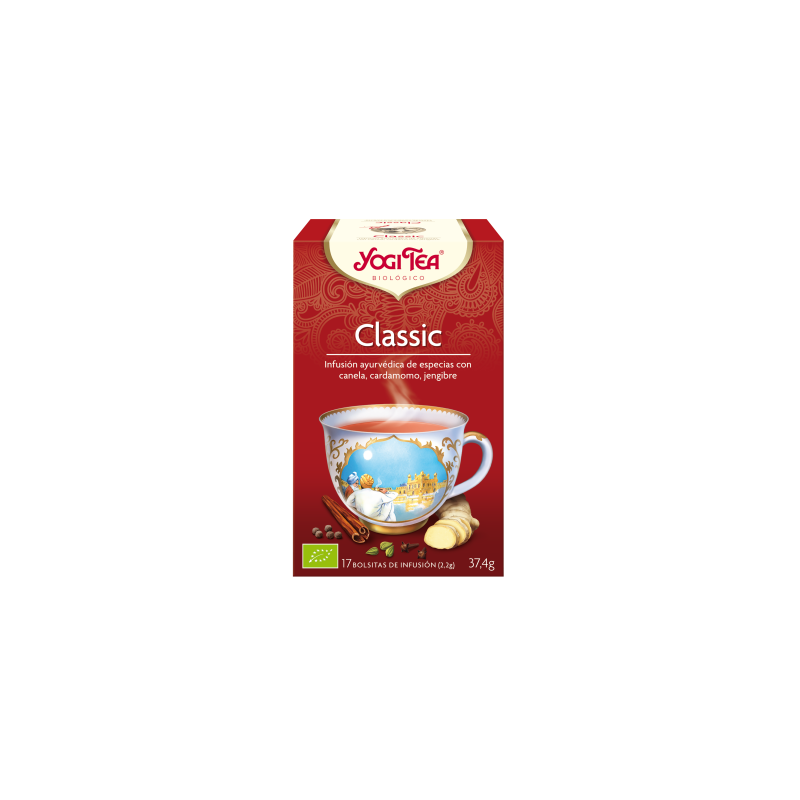 YOGI TEA® Classic es la infusión que Yogi Bhajan servía originalmente a sus alumnos de yoga. La mezcla única que combina las especias ayurvédicas tradicionales: canela, cardamomo, jengibre, clavo y pimienta negra. Reconfortante, relajante, delicioso, picante y maravilloso. El más disfrutado en la tradición india, endulzado y con un poco de leche, animal o vegetal. La esencia de esta infusión es: Comodidad y abundancia.Composición de CLASSIC 17 FILTROS BIO