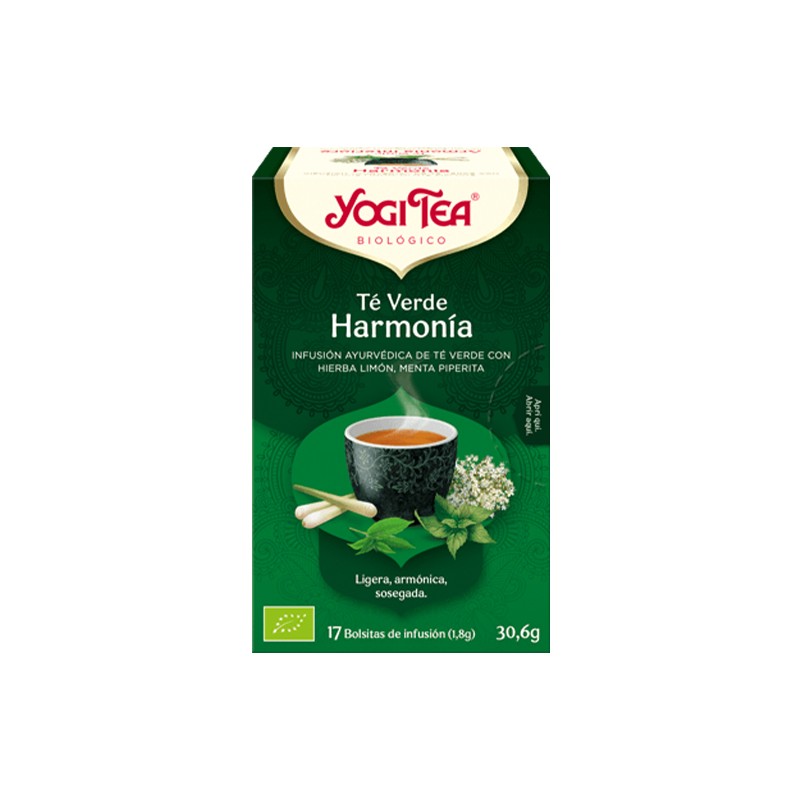 La mezcla de té verde con aromática hierbabuena, cardamomo y dulce canela es el secreto del excepcional sabor de este original té verde. Saborea este té sorprendentemente suave y delicioso, ya sea Armonioso, vigilante, ligero. En el YOGI TEA® Té Verde Harmonía, el té verde y la kombucha representan la noble tradición asiática de un estilo de vida equilibrado en cuerpo y mente. Este té combina la antigua tradición del té verde con la hierba limón, la flor de saúco y la menta fresca para conseguir una deliciosa y placentera mezcla.