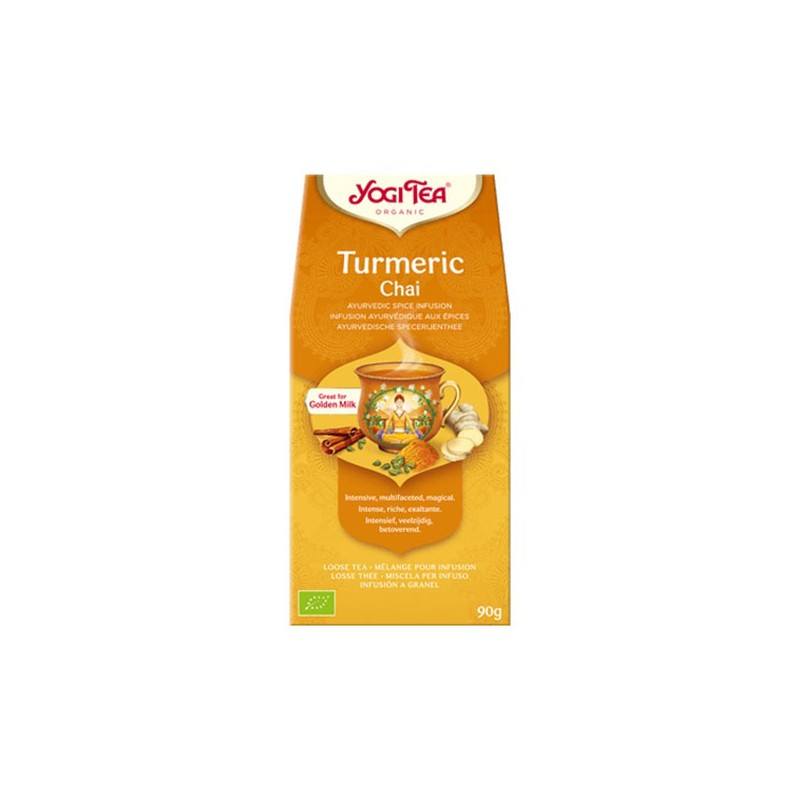 Chai Cúrcuma: La cúrcu,a sa considerada sagrada en la India hace más de 5.000 años, la raíz de la cúrcuma resplandece con un poderoso color amarillo dorado. Combinada con deliciosas especias chai como la canela dulce y el cardamomo, la cúrcuma emana toda su plenitud en esta infusión. Su disfrute garantiza calor exótico y momentos maravillosos.