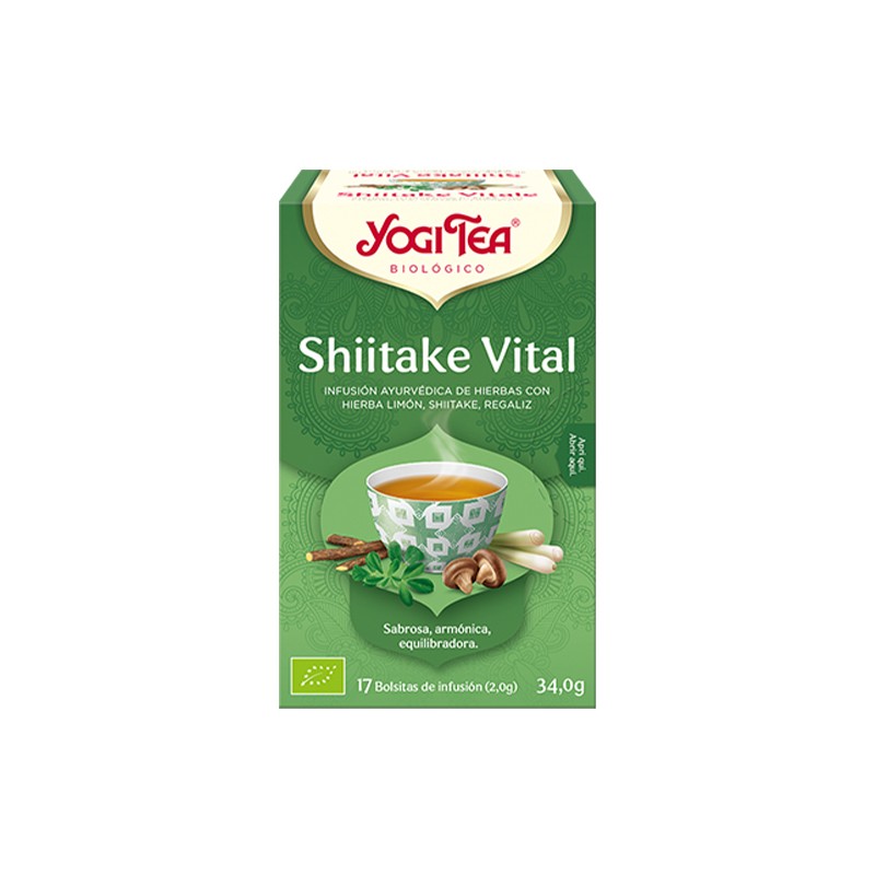 YOGI TEA® Shiitake Vital es una infusión muy especial: extraordinaria y a la vez tan familiar como si nunca hubiésemos tomado otra cosa. Las animadas y sabrosas hierba limón y regaliz aparecen reinterpretadas al verse acompañadas de las setas shiitake. Con su sabor ligeramente salado, aromático y delicado a la vez, cada sorbo de se YOGI TEA® Shiitake Vital deviene una vivencia muy especial. La esencia de esta infusión es: «Cuídate y cuida tu interior.»