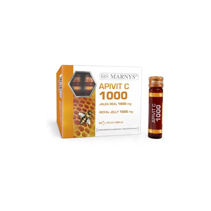 MARNYS® Apivit C 1000 contiene 1 gramo de Jalea Real y 20 mg de vitamina C, para favorecer los procesos metabólicos aun bajo condiciones exigentes.