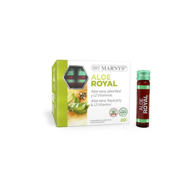 MARNYS® Aloe Royal es un complemento resultado a base de Aloe Vera, Jalea Real, complejo de vitaminas B, C, E, A y D y fructoligosacáridos, que complementan la dieta y las necesidades energéticas del organismo, facilitando el bienestar orgánico.