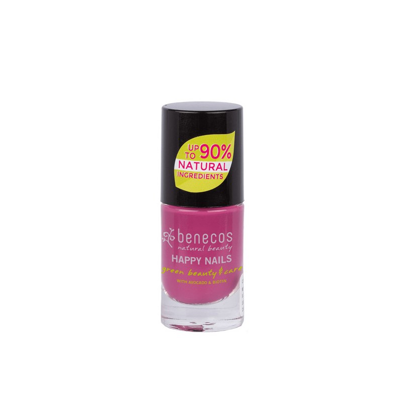 Esmalte vegano de uñas Benecos ingredientes nutritivos. Fórmula con hasta un 90% de ingredientes de origen natural. Además, es libre de formaldehidos, toluenos, resinas, alcanfor, ftalatos, parabenos, siliconas y compuestos organohalogenados.