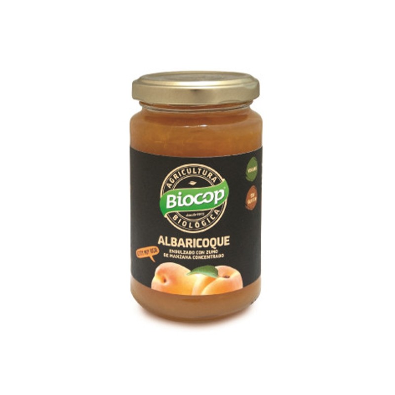 Compota de albaricoque. Elaborada con albaricoques maduros mediante cocción mínima para garantizar todo el sabor y aroma de la fruta. Endulzado con concentrado de zumo de manzana.