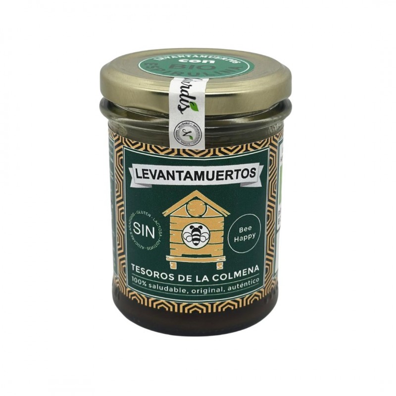 El Levantamuertos es un complejo compuesto elaborado artesanalmente a base de ingredientes naturales. Reconstituyente, complemento energético y alimenticio natural. Recomendado para combatir el cansancio y la fatiga, ayuda para la retención de memoria y para quitarte esas resacas. Fortalece tus defensas, te viene bien a la garganta y además está riquísimo. Producto destacado de nuestra tienda. Esta receta además tiene un ingrediente extra, Espirulina de Revival, un alga microscópica que le aporta proteínas, minerales y muchas vitaminas. Esta espirulina es de procedencia malagueña, su granja se encuentra en Coín.