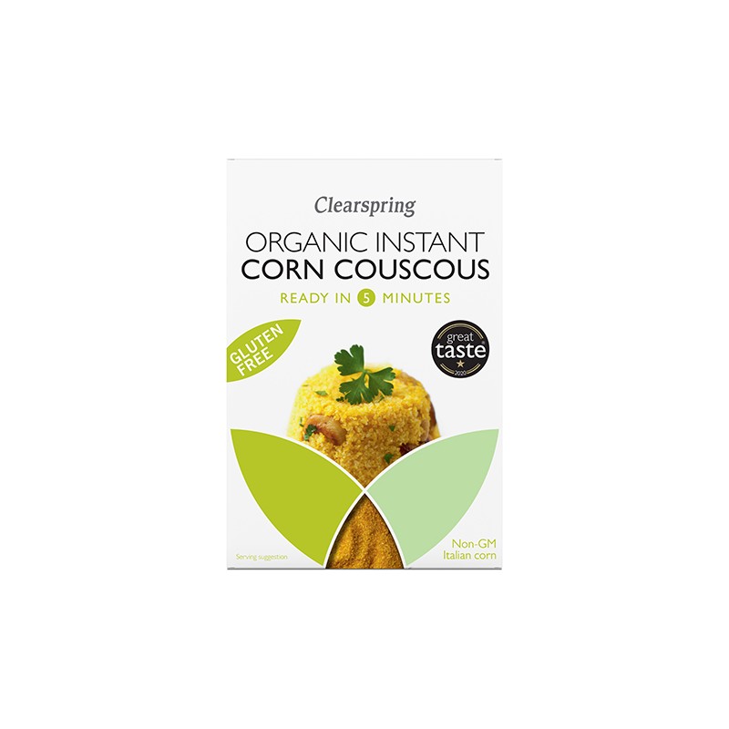 El cuscús sin gluten de Clearspring está hecho de maíz italiano 100% orgánico de color dorado. Tiene una textura y consistencia similar a la del cuscús de trigo duro. Una gran alternativa al arroz y la pasta, este grano de sabor suave es delicioso servido con tajines marroquíes, como relleno de pimientos asados o en una ensalada de verano mezclada con hierbas y alcaparras.