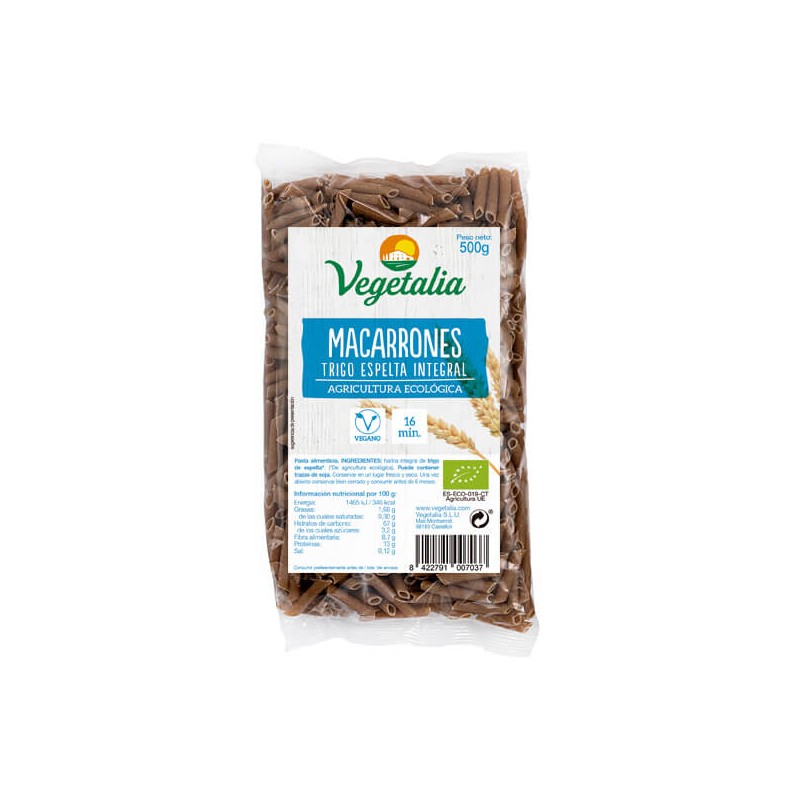Vegano.Composición de Macarrones de espelta integral bio 500mg