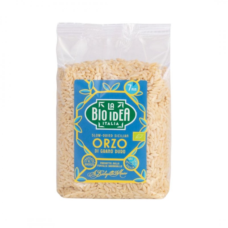 El orzo, también conocido como risoni, es una variante de pasta versátil que se asemeja a los granos de arroz. Se utiliza comúnmente en la cocina mediterránea para platos como ensaladas, sopas y guarniciones. Nuestro orzo orgánico está cuidadosamente hecho con el mejor trigo duro y ofrece una deliciosa textura y sabor.
