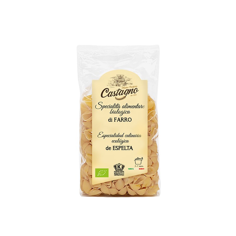 Conchas de pasta elaboradas con harina de espelta ecológica.