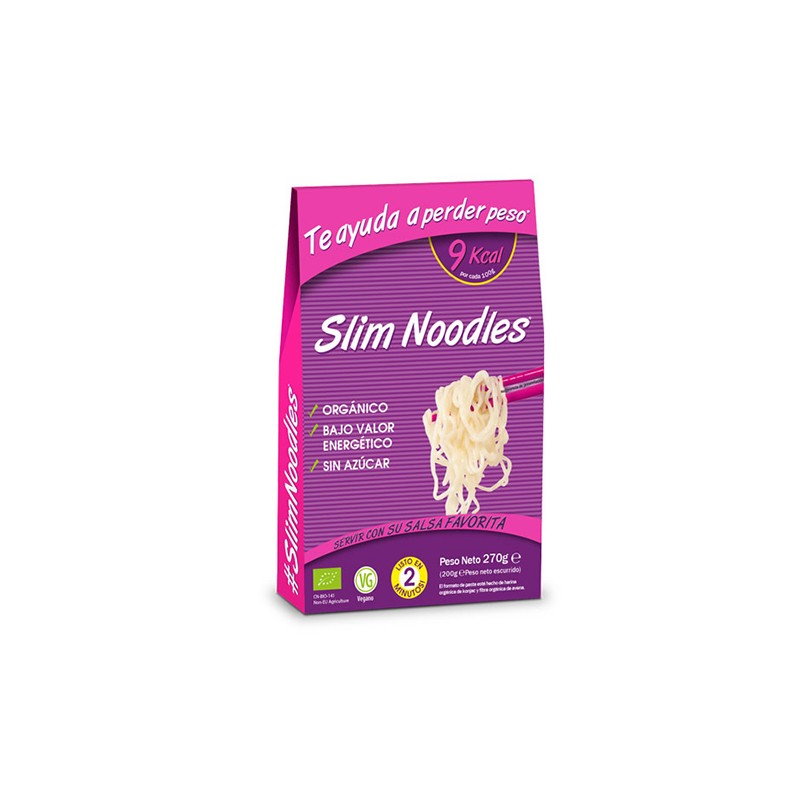Los Noodles Slim Pasta contienen 9 calorías por cada 100 gramos, 0 gramos de hidratos y 0 gramos de grasas. ¡Para que disfrutes de comer todo lo que quieras sin perder la figura!
