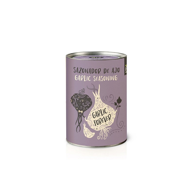 Sazonador de ajo. Imprescindible en la cocina mediterránea. Polivalente, potenciador de sabor con un delicado aroma picante valido tanto para carnes, pastas, verduras, pescados, ensaladas o incluso para una tostada con aceite de oliva.