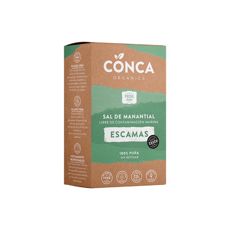 Escamas de sal fósil sin refinar libre de monoplásticos, harina de arroz* (3%). *Procedente de agricultura ecológica