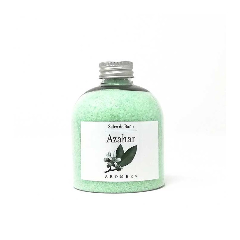 Frasco con 400 gramos de sal espumosa perfumada con Azahar
