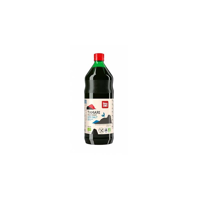 Tamari (25% Menos Sal) de Lima es perfecto para utilizar en la cocina, elaborada con soja de agricultura biológica, es de sabor fuerte.