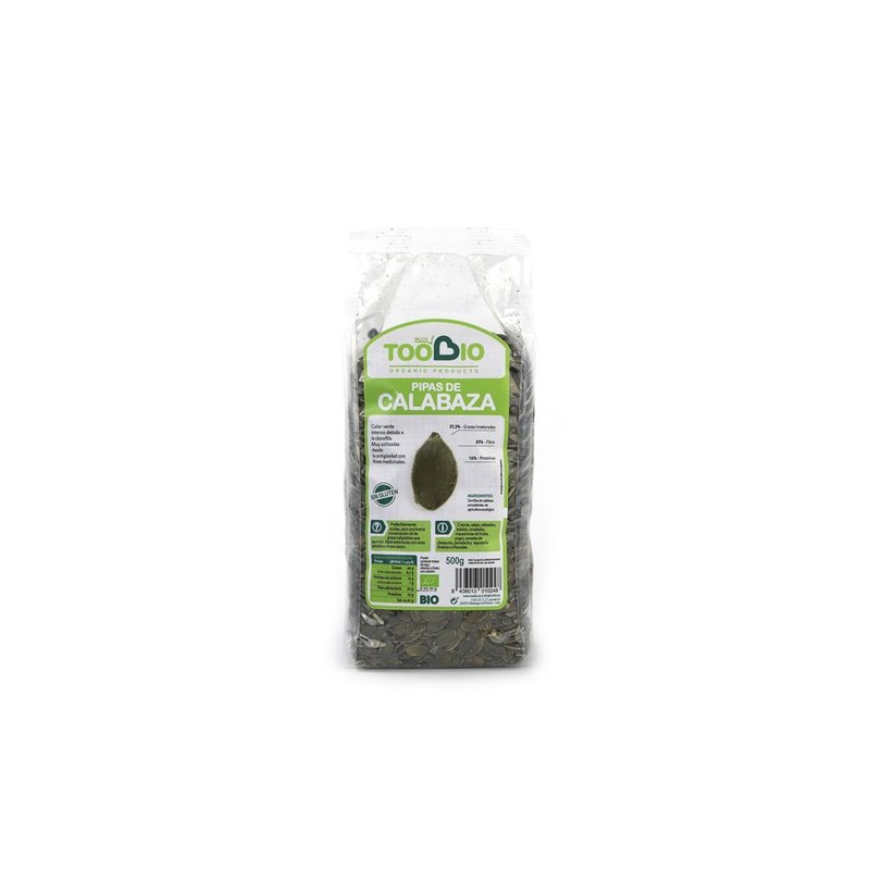 Semillas de calabaza procedentes de agricultura ecológica.Composición de Semilla calabaza bio 500 grs.