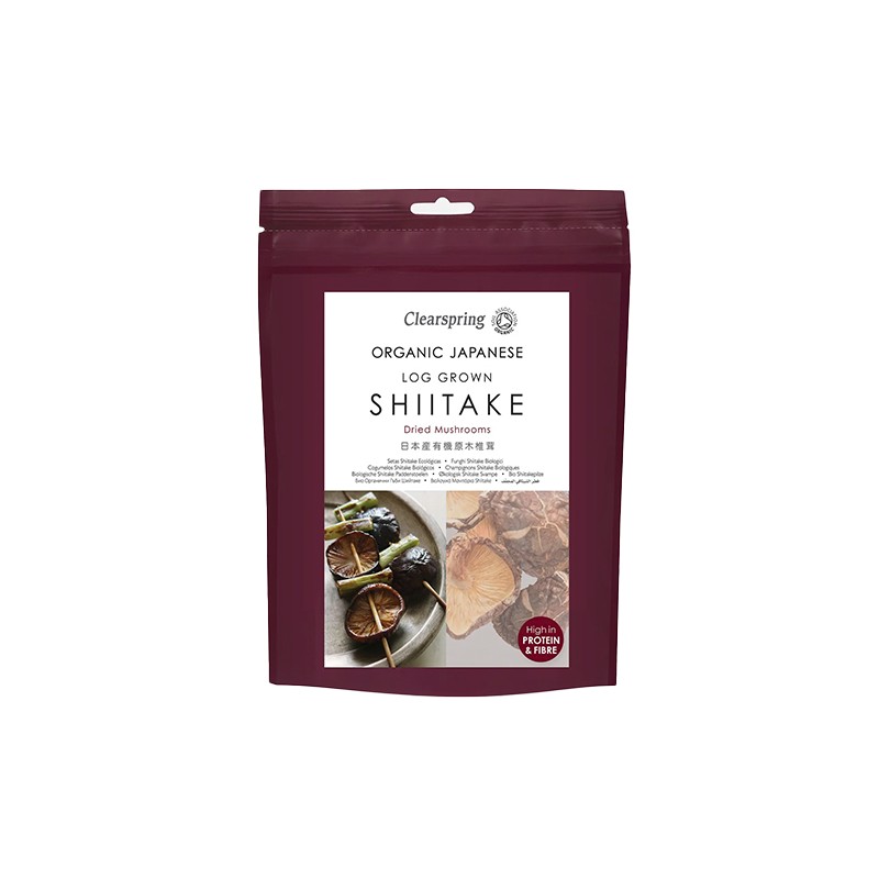 Fieles al método tradicional, los hongos shiitake Clearspring se cultivan orgánicamente en auténticos troncos de roble dentado en un entorno natural y silvestre. Los shiitake cosechados se secan cuidadosamente y poseen todo el profundo sabor umami, tan apreciado tanto en la cocina oriental como en la occidental.