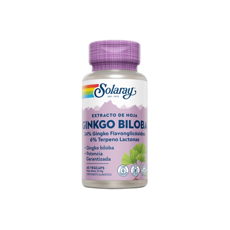 Complemento alimenticio. El extracto de Ginkgo biloba de Solaray® incluye todos los compuestos importantes incluyendo ginkgólidos y bilobálidos.