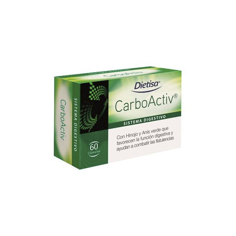 CarboActive de Dietisa es un suplemento alimenticio a base de Carbón Vegetal activado y extractos de Hinojo y Anís verde que colaboran en las funciones digestivas y ayudan a combatir las flatulencias.