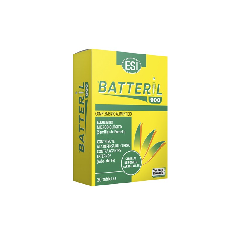 Sin gluten, sin azúcar añadido, sin conservante añadido ni colorante artificial.Composición de Batteril 900 30 tabletas
