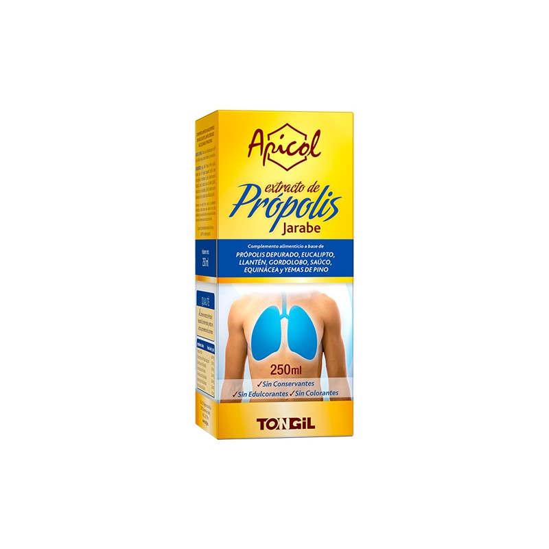 Más información de Apicol Jarabe de extracto de própolis 250 ml.