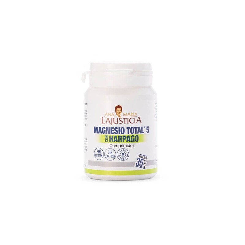 Extracto seco de harpagofito y 5 fuentes de Magnesio, entre ellas citrato de magnesio y bisglicinato de magnesio, que presentan una elevada biodisponibilidad y absorción. Esta combinación hace que sea el producto ideal para aquellas personas que necesitan un refuerzo de Magnesio y fortalecer el sistema locomotor. Ayuda a mantener la salud de las articulaciones, a una buena movilidad y a reducir las molestias causadas por el sobreesfuerzo, la artrosis o el estrés. Además, contribuye eficazmente a la relajación muscular, a reducir el cansancio y la fatiga física y mental, al mantenimiento de los tejidos, al metabolismo energético normal y al funcionamiento normal del sistema inmunitario y neuromuscular. Sin gluten. Sin lactosa. Apto para veganos.Composición de Magnesio total con harpago 70 comprimidos