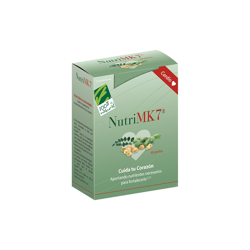 NutriMK7® cardio es un complemento alimenticio a base de Vitamina K2 en forma de Menaquinona 7 (MK7), aceite de pescado (omega-3) y vitamina D3; que nos ayuda a aprovechar el calcio, es decir, fijarlo en los huesos y mantenerlo fuera de las paredes de las arterias.