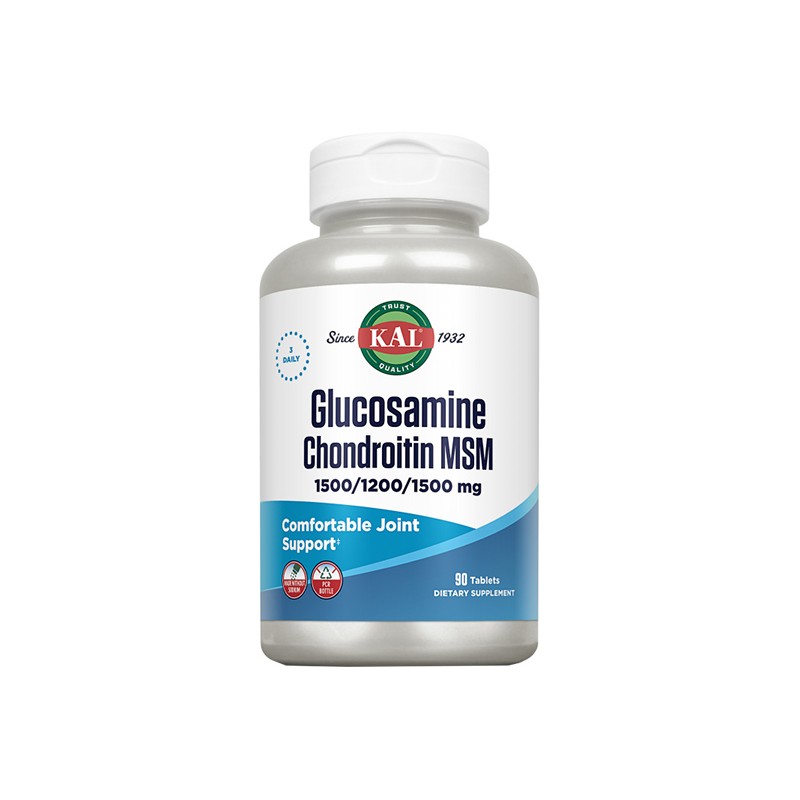 Glucosamina Chondroitin MSM de Kal es un complemento alimenticio especialmente formulado para favorecer la función articular y la movilidad.