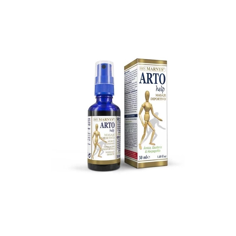 MARNYS® ARTOHELP es un producto de masaje deportivo elaborado con aceite 100% vegetal testado bajo control dermatológico, aceites esenciales 100% puros y naturales y extractos vegetales de Árnica y Harpagofito.