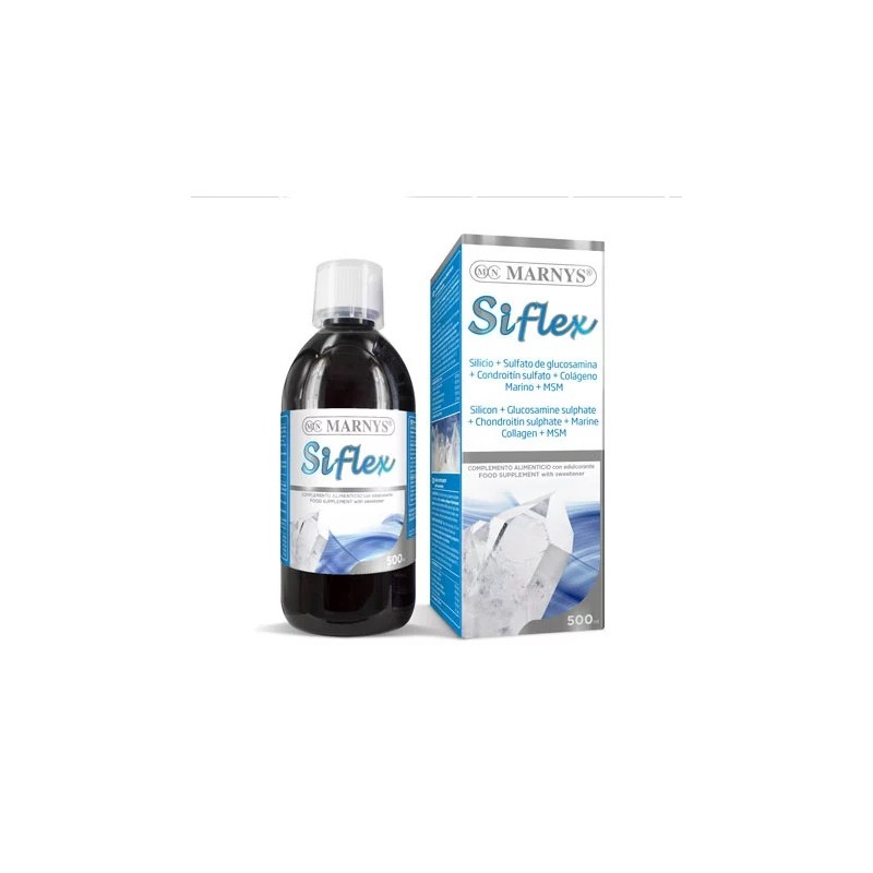MARNYS® Siflex es una fórmula desarrollada a partir de Silicio biodisponible de última generación con Sulfato de Glucosamina, Sulfato de Condroitina, Colágeno Marino y Metilsulfonilmetano (MSM), que favorecen la estructura osteoarticular.