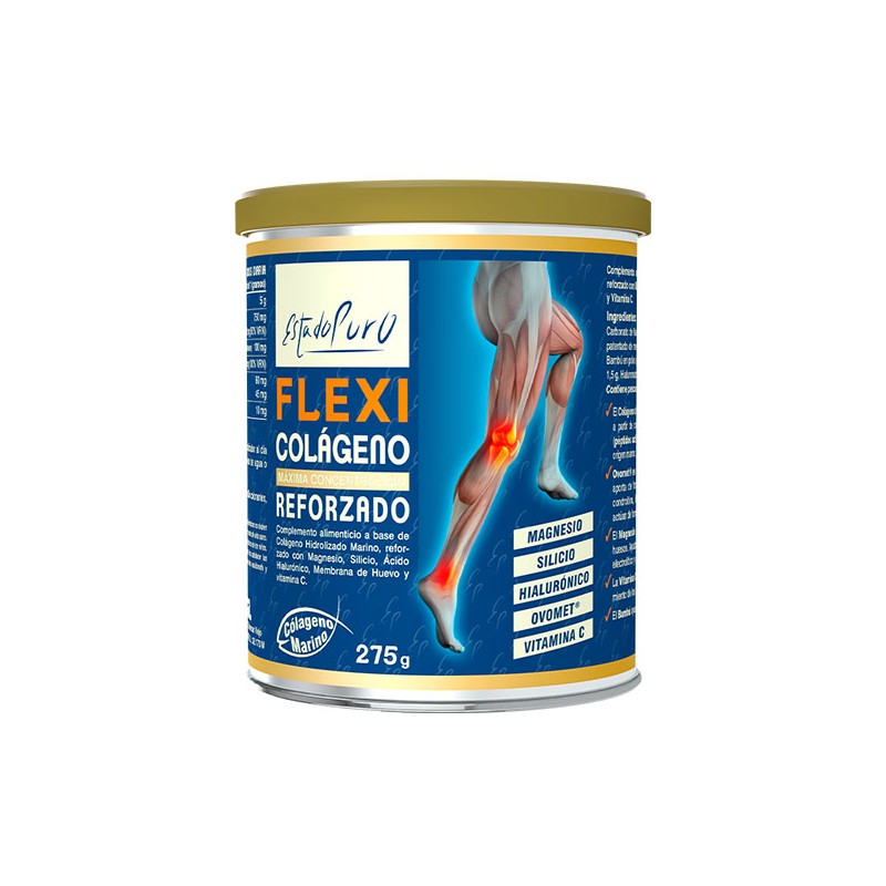 El Magnesio contribuye al normal funcionamiento de los músculos y huesos. Ayuda a reducir el cansancio y la fatiga, contribuye al equilibrio electrolítico y al normal metabolismo energético. La Vitamina C contribuye a la formación de colágeno para el funcionamiento de los huesos y cartílagos. El Bambú ayuda a recuperar el confort articular, la movilidad y flexibilidad.Composición de Flexi Colágeno Reforzado 275 g