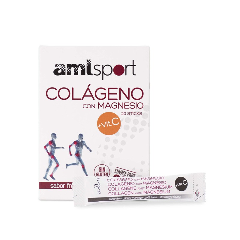 Las combinaciones de Colágeno con Magnesio y vitaminas C y B son los aliados ideales para garantizar un buen rendimiento deportivo. El colágeno es el componente principal nuestras articulaciones, tendones, ligamentos, músculos y huesos. El magnesio y la vitamina C potencian la síntesis de proteínas y la formación de nuevo colágeno. La toma diaria de suplementos de colágeno con magnesio de amlsport® garantiza un correcto equilibrio proteico, mineral y vitamínico para fortalecer las articulaciones, huesos y músculos de los deportistas y mejorar su recuperación post-entreno.Composición de Colágeno con Magnesio y Vitamina C Amlsport 20 sticks