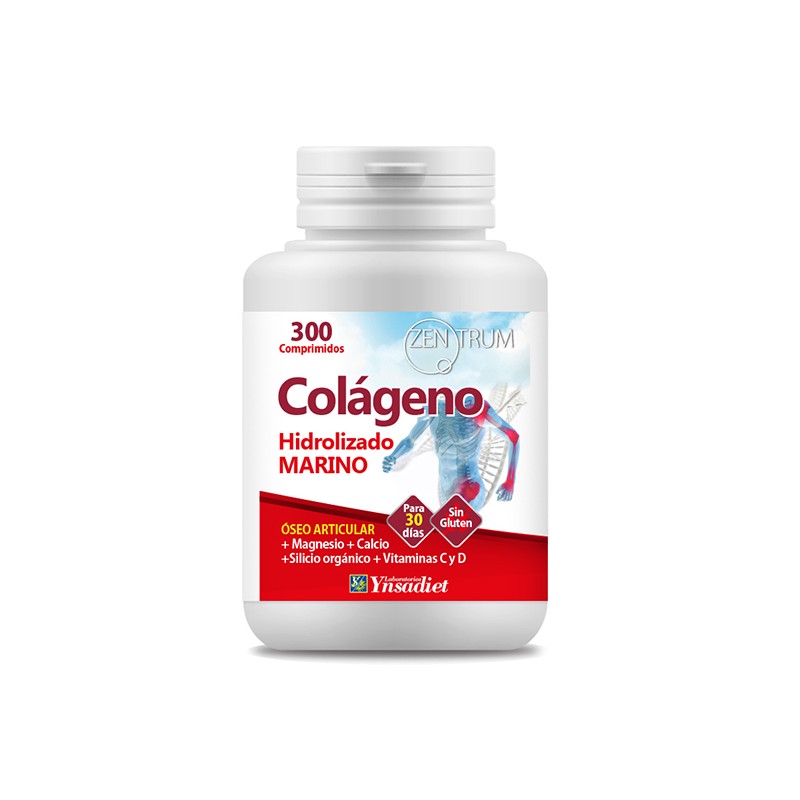 Complemento alimenticio elaborado a base de Colágeno Hidrolizado Marino, Minerales, Vitaminas y Especies vegetales.Composición de Zentrum Colágeno hidrolizado marino 300 comprimidos