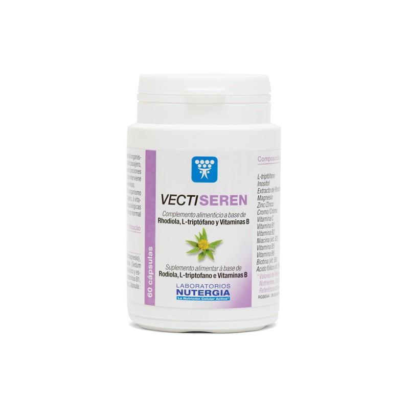 Vectiseren asocia la rodiola, que ayuda a reducir el impacto negativo del stress sobre el organismo, con la vitamina B9 que contribuye a favorecer funciones psicológicas normales. También aporta vitamina B3 que interviene en el buen funcionamiento del sistema nervioso.