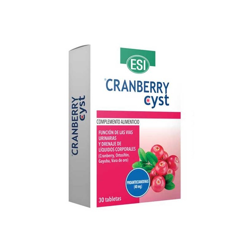 Cranberry Cyst es la línea de complementos capaces de promover la diuresis del organismo, estimulando la actividad drenante y depurativa del hígado y los riñones. Cranberry Cyst es un remedio para fortalecer el organismo contra las infecciones del traao urinario. También contiene extractos naturales como semillas de pomelo, té verde, gayuba y vara de oro. El arándano rojo, o Cranberry, favorece el drenaje del exceso de líquidos y el correcto funcionamiento de las vías urinarias, estimulando las defensas del organismo. El té verde favorece la diuresis y tiene una acción tónica sobre los tejidos del tracto urinario, la gayuba estimula el correao funcionamiento de las vías urinarias y la eliminación del exceso de líquidos, la vara de oro favorece la actividad de los riñones y de las vías urinarias dirigida a eliminar el exceso de líquidos.