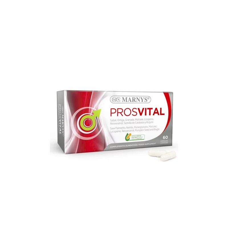 MARNYS® Prosvital es una exclusiva asociación de Sabal, Ortiga, Granada y otros ingredientes vegetales todos estandarizados, que junto al Zinc, Selenio y vitamina B6, facilita el bienestar masculino en próstata y vías urinarias.