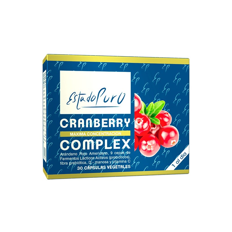 Complemento alimenticio a base de extracto seco concentrado del fruto de Cranberry (Vaccinium macrocarpon) estandarizado en proantocianidinas (PACs), 9 cepas de Fermentos Lácticos activos (probióticos), fibra prebiótica, D-manosa y vitamina C.