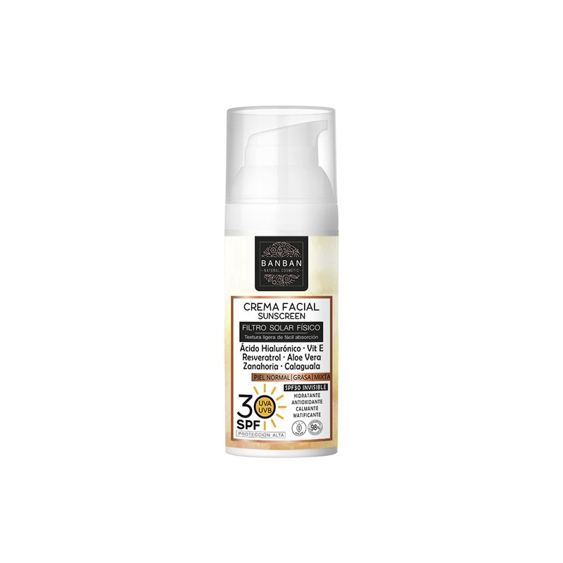 Crema Facial Filtro Solar Físico SPF30 Piel Normal, Grasa y Mixta